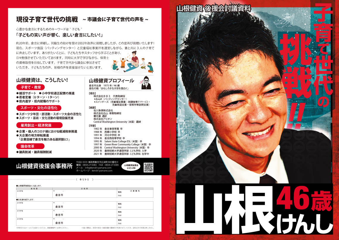 山根健資後援会では、山根健資の活動を応援していただける会員を募集しております。